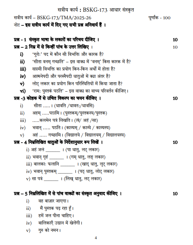 Assignment Code : BSKG 173/TMA/2025-26