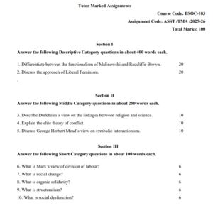Assignment Code : BSOC 103/TMA/2025-26