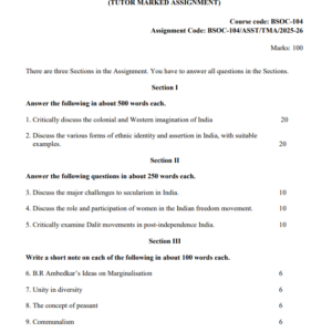 Title : BSOC 104 : Sociology of India – II in India Solved Assignment in English 2025-26