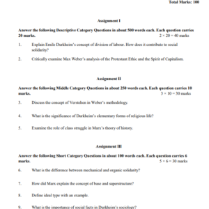BSOC 111 : Sociological Thinkers-I in English Solved Assignment 2025-26