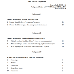 Assignment Code : BSOC 113/TMA/2025-26