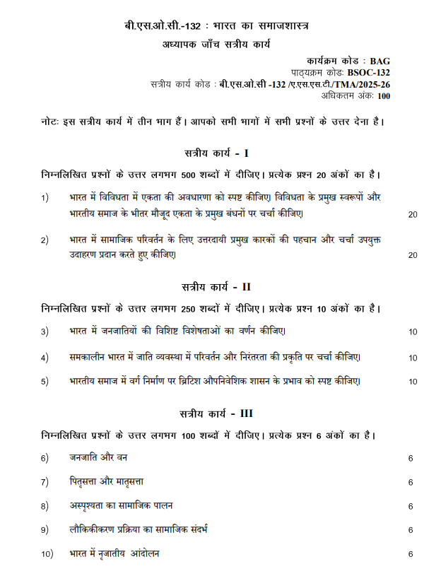 Assignment Code : BSOC 132/TMA/2025-26