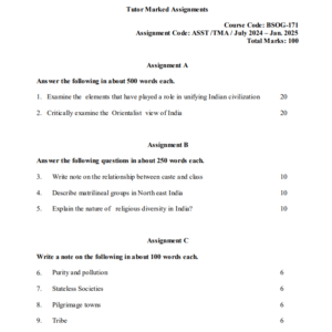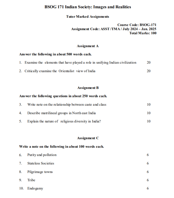 Assignment Title : BSOG 171 : Indian Society : Images and Realities in English Solved Assignment 2024-25