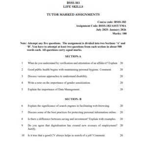 Assignment Code : BSSS 183/TMA/2025-26