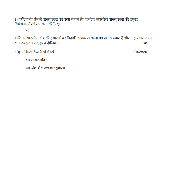 8) पर्यटन के क्षेत्र में वास्तुकला का क्या महत्व है? प्राचीन भारतीय वास्तुकला की प्रमुख विशेषताओं की व्याख्या कीजिए ।
