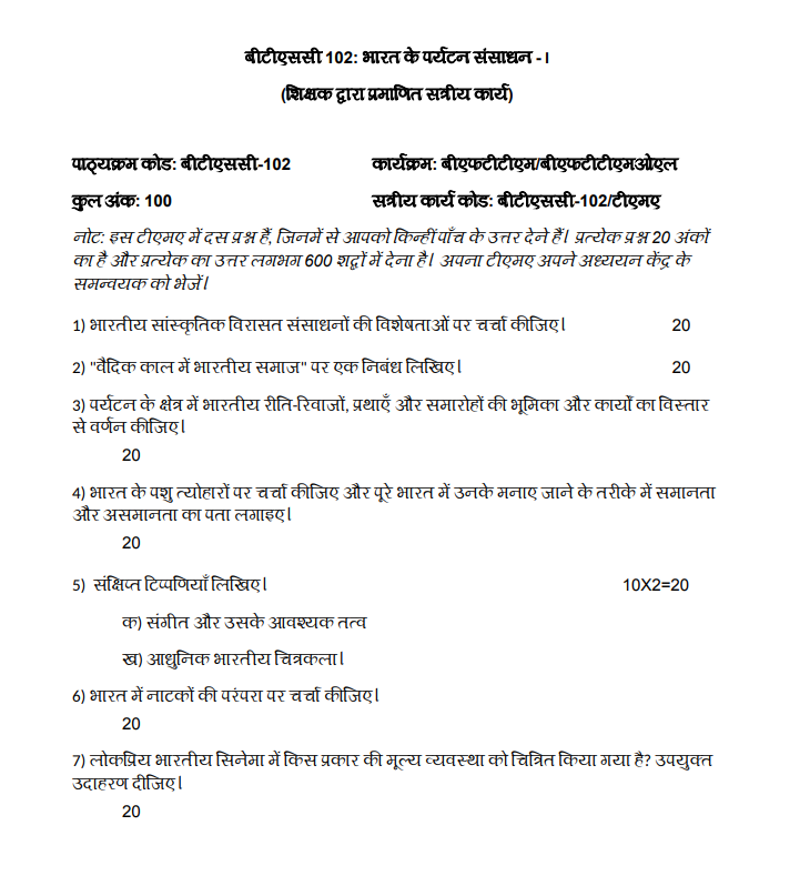 BTSC 102 : भारत के पर्यटन संसाधन-I in Hindi Solved Assignment 2025-26