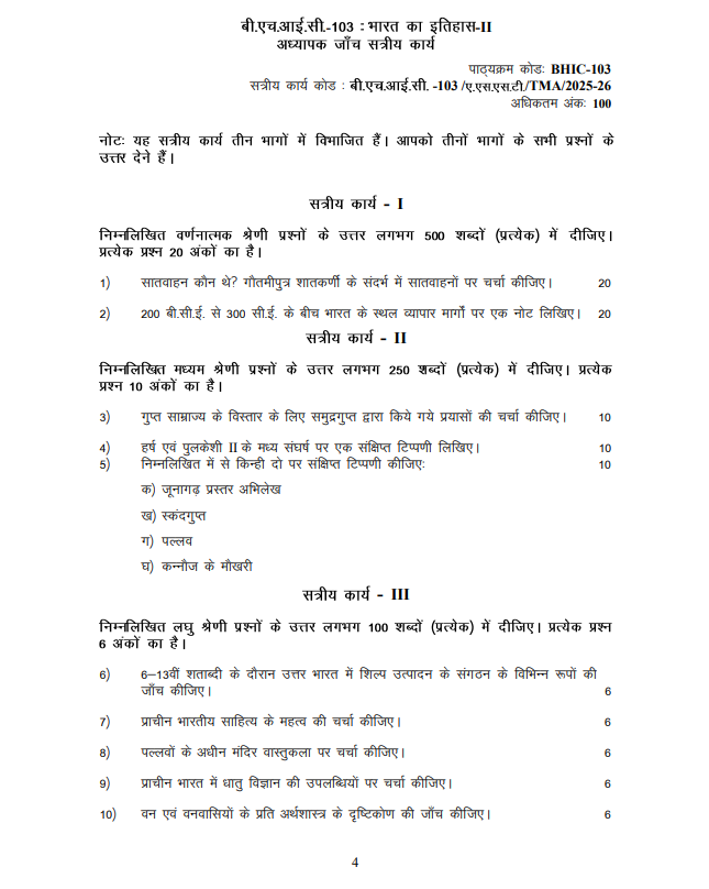 Assignment Code : BHIC-103/TMA/2025-26