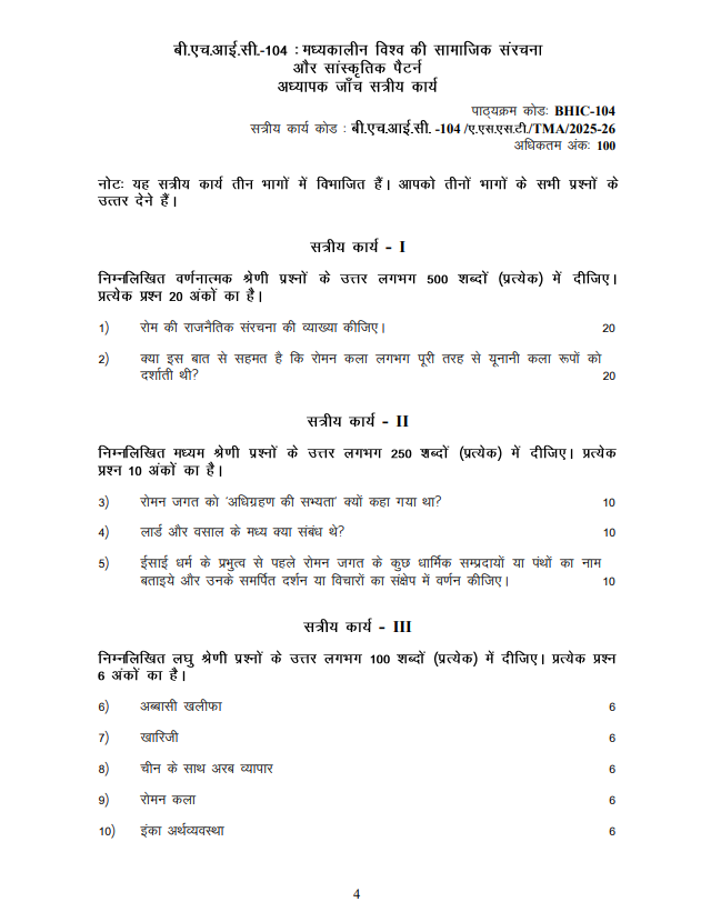 Assignment Code : BHIC-104/TMA/2025-26