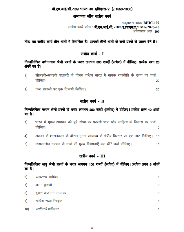 BHIC -109 : भारत का इतिहास-V (c. 1550-1605) in Hindi Solved Assignment 2025-26