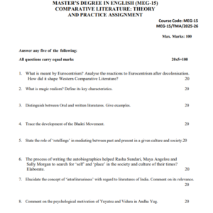 Assignment Title : MEG 15 : Comparative Literature : Theory and Practice Solved Assignment 2025-26