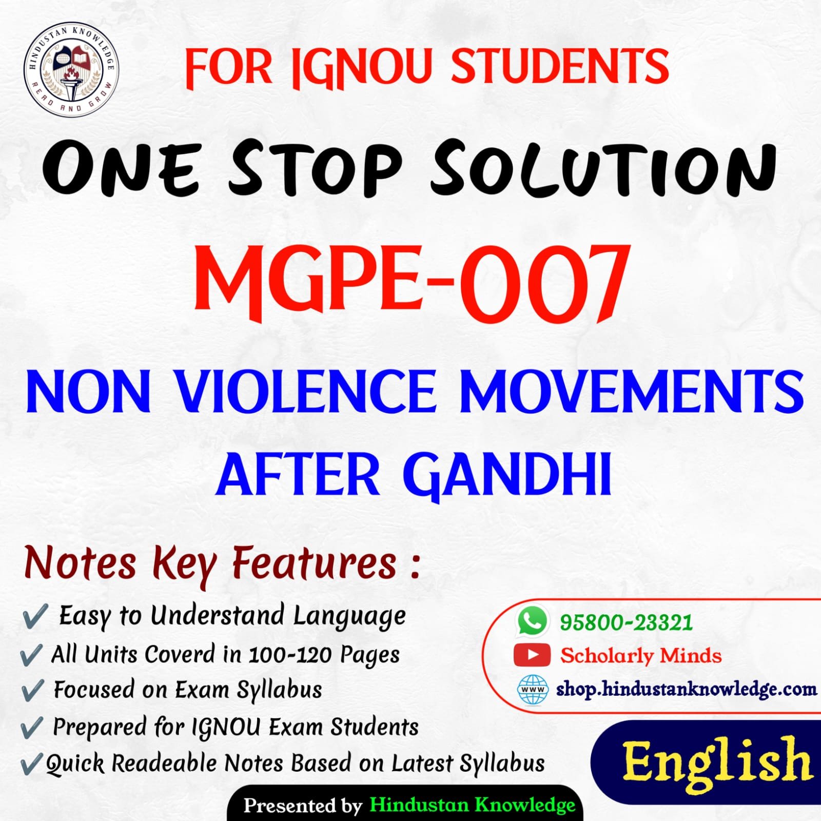 Title : MGPE 007 Non-Violence Movements after Gandhi in Englsih Help Book | IGNOU Study Notes