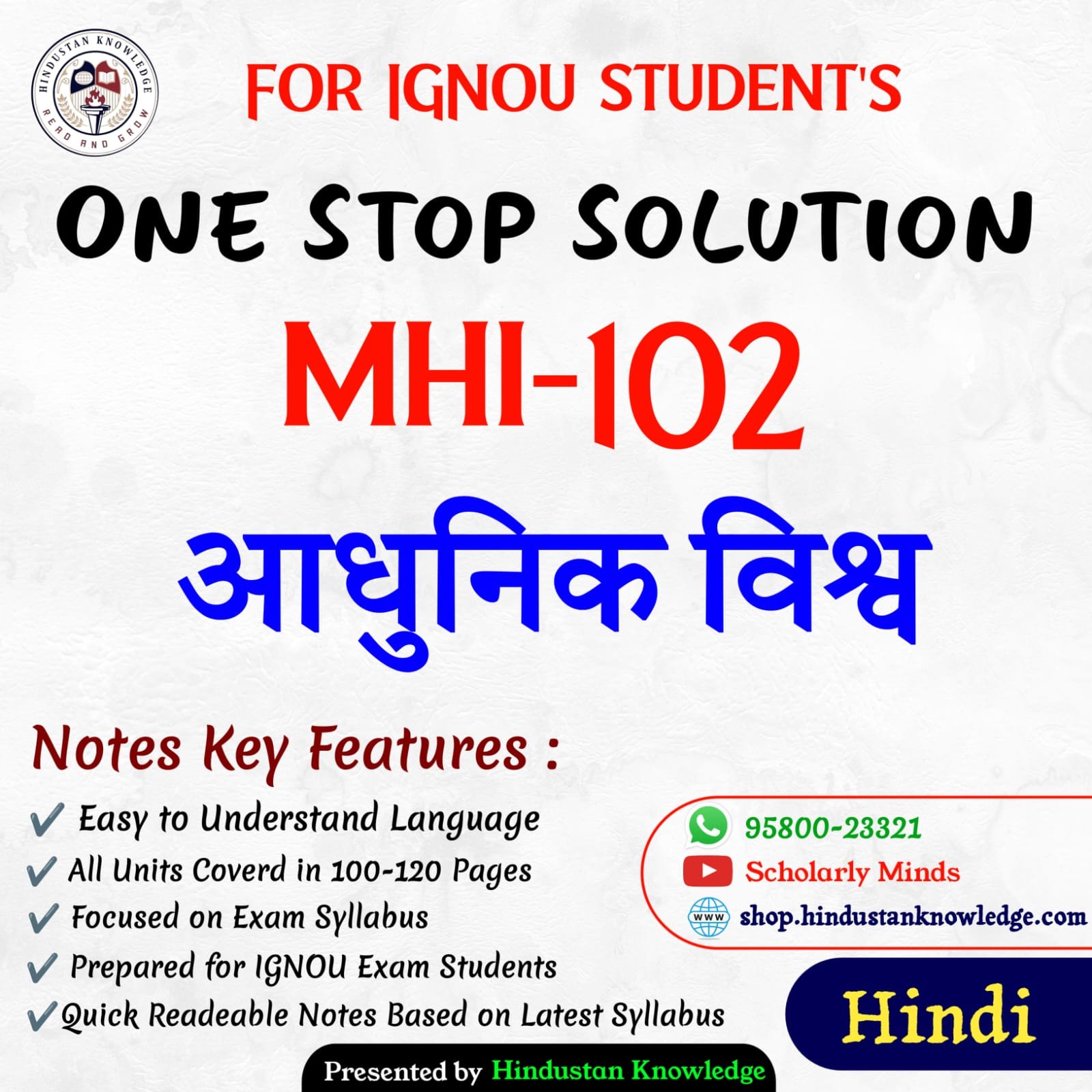 If you are looking for IGNOU MHI-102 Study Material or Books in Hindi, you’ve come to the right place! This page provides everything you need for the course MHI-102 : आधुनिक विश्व, which is part of the IGNOU MA Histoy program.