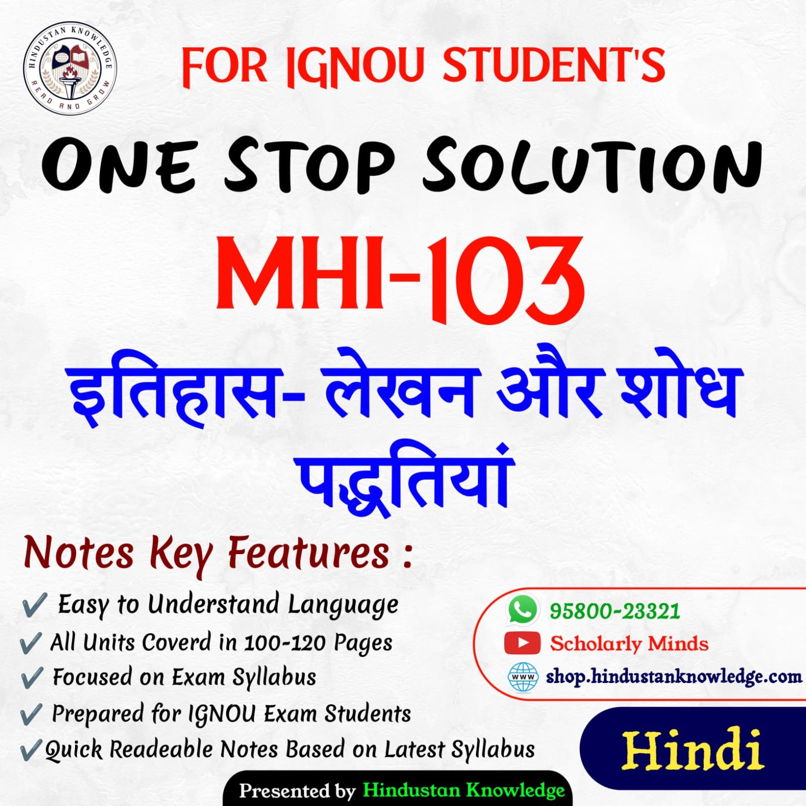 Title : MHI 103 : इतिहास-लेखन और शोध पद्धतियाँ Help Book Study Material for IGNOU Exam