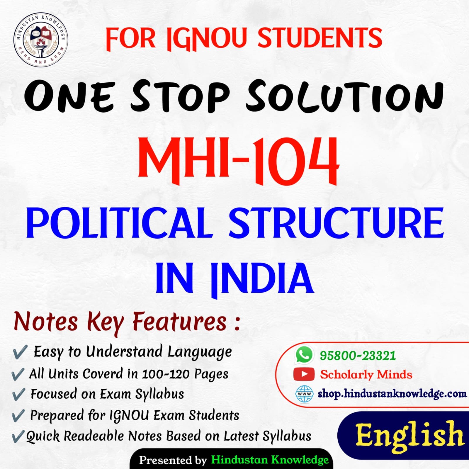Title : MHI 104 Political Structures in India in Englsih Help Book | IGNOU Study Notes