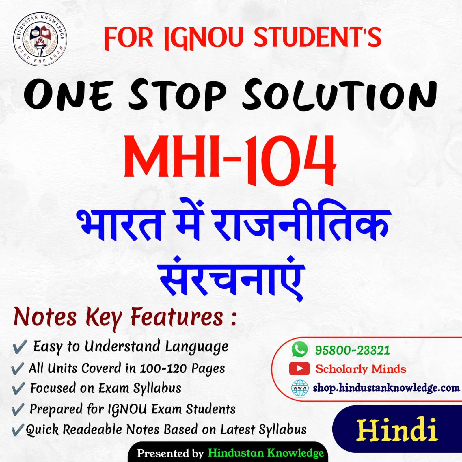 Title : MHI 104 : भारत में राजनैतिक संरचनाएँ Help Book Study Material for IGNOU Exam