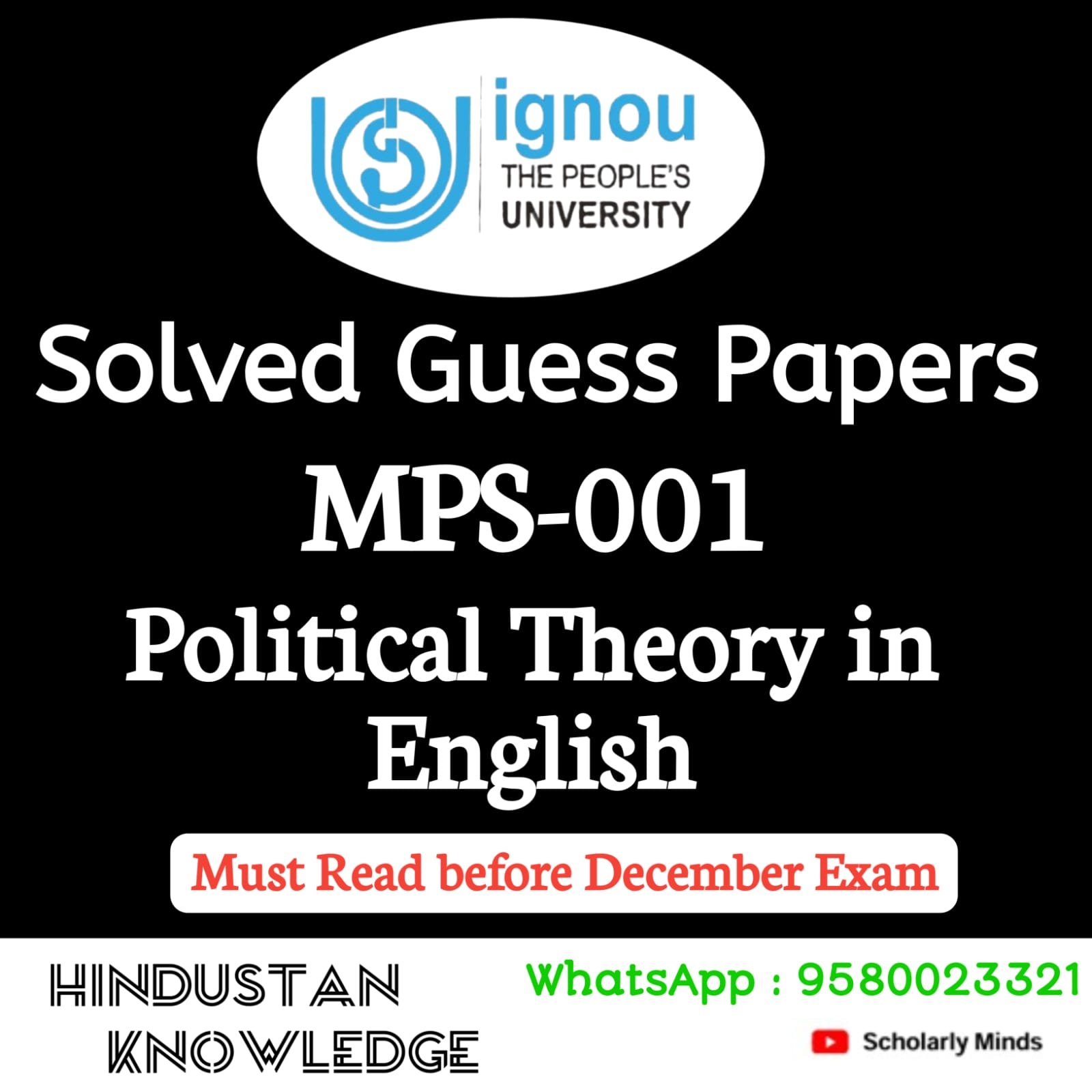 Title : MPS 001 : POLITICAL THEORY Guess Paper December Exam 2025