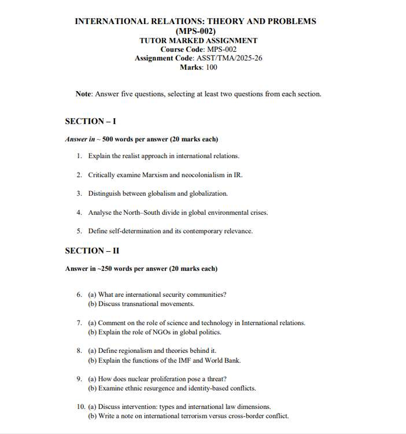 Assignment Title : MPS – 002 : International Relations : Theory and Problems in English Solved Assignment 2025-26
