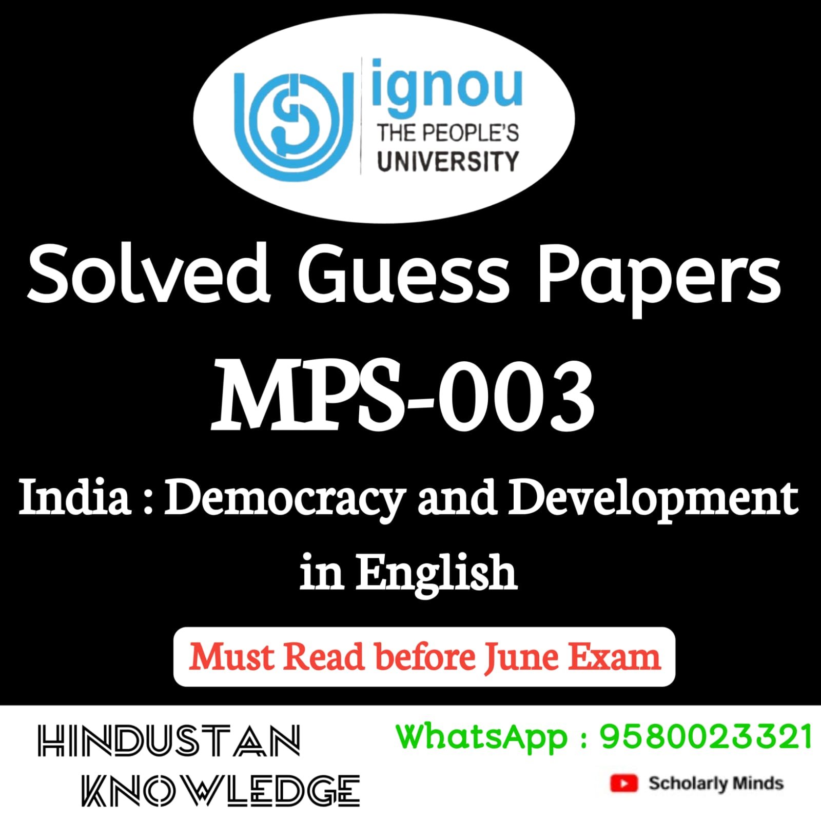 Title : MPS 003 : INDIA: DEMOCRACY AND DEVELOPMENT Guess Paper June Exam 2025