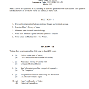 Assignment Title : MPSE 003 : WESTERN POLITICAL THOUGHT (From Plato to Marx) in English Solved Assignment 2025-26