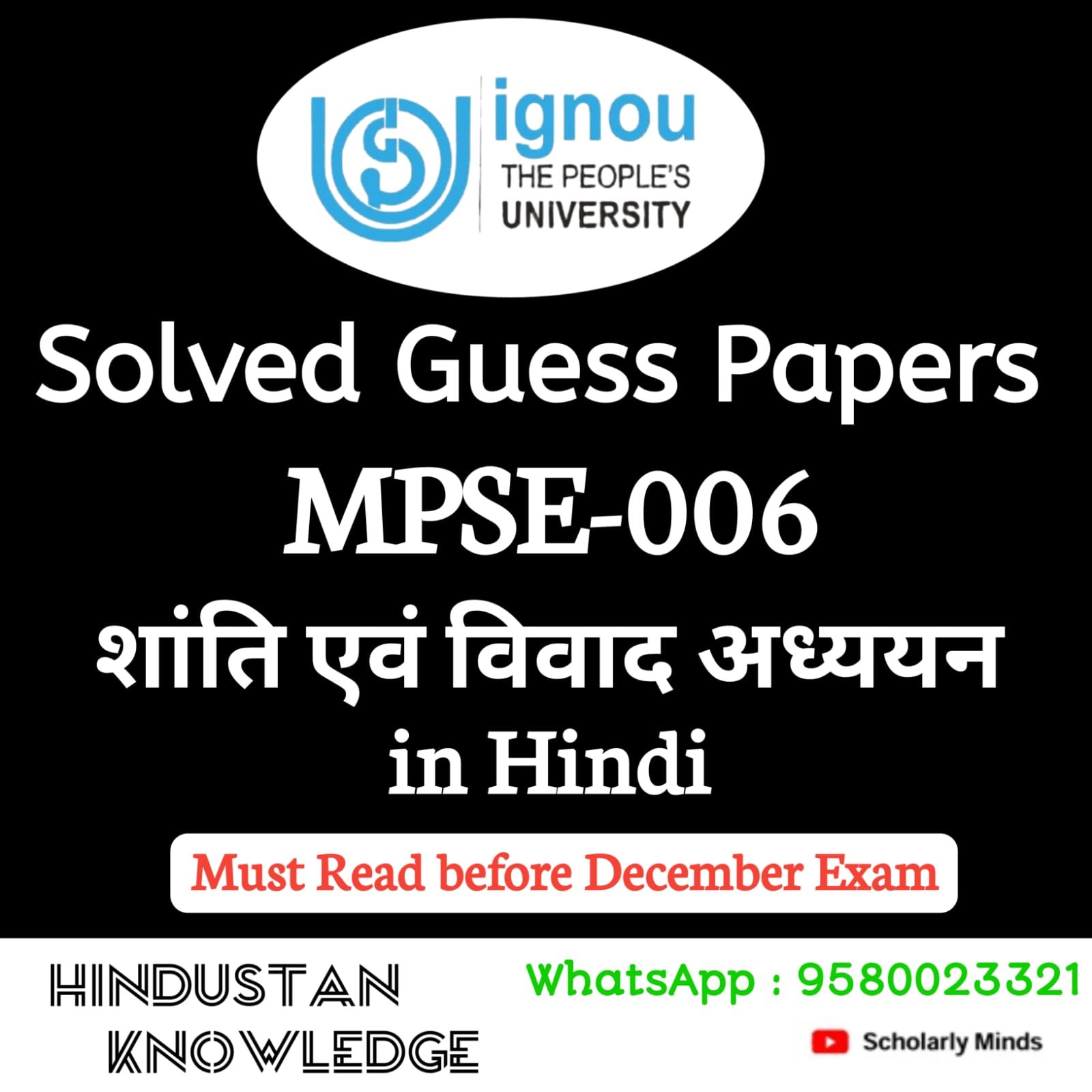 MPSE 006 : शांति एवं विवाद अध्ययन in Hindi Guess Paper December 2025 Exam