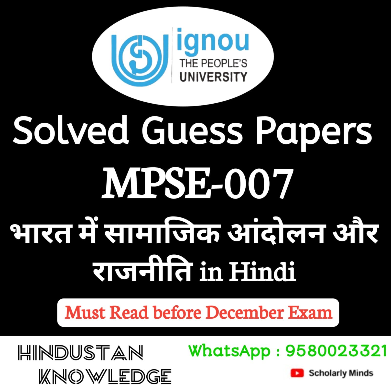 MPSE 007 : भारत में सामाजिक आंदोलन और राजनीति in Hindi Guess Paper December 2025 Exam