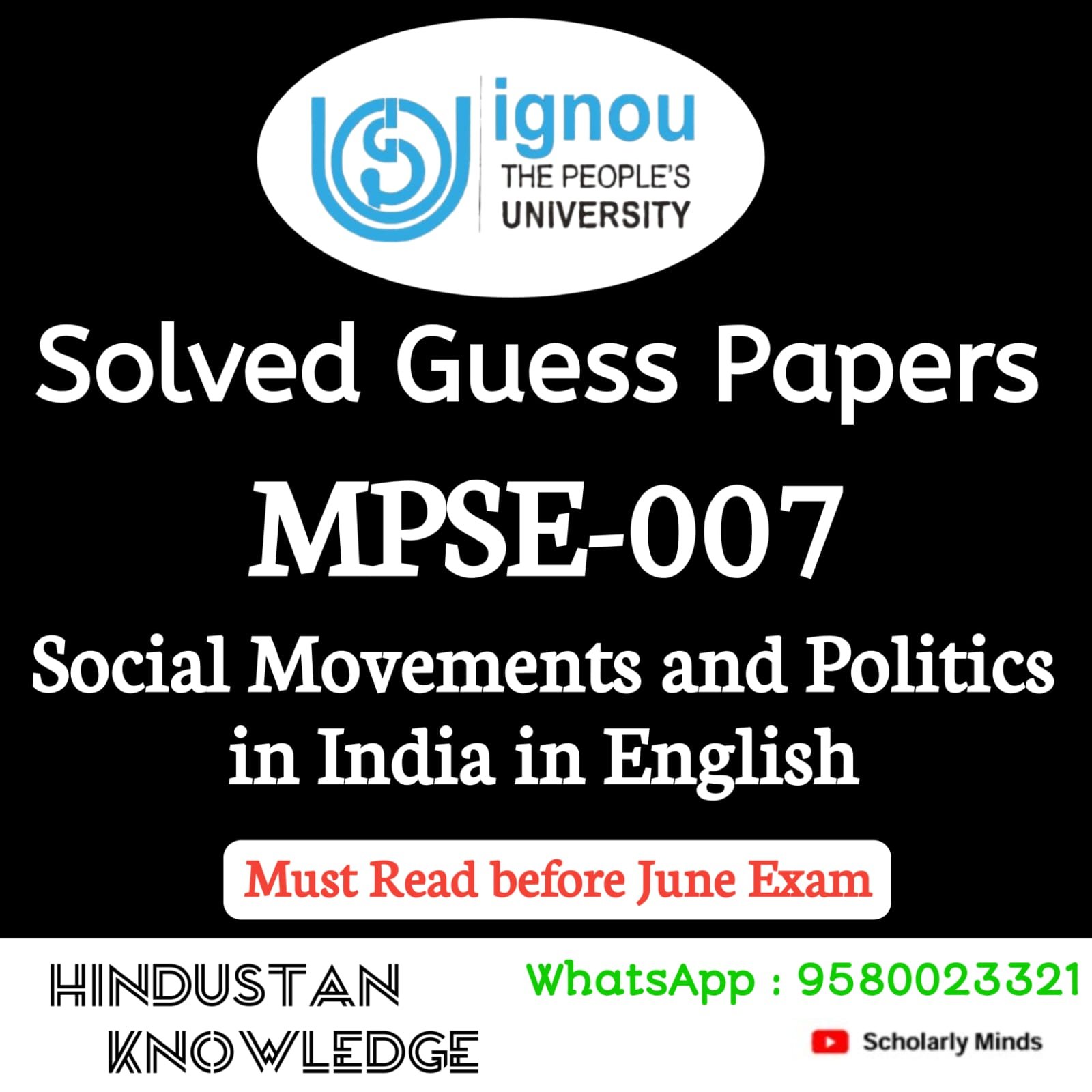 Title : MPSE 007 : SOCIAL MOVEMENTS AND POLITICS IN INDIA Guess Paper June Exam 2025
