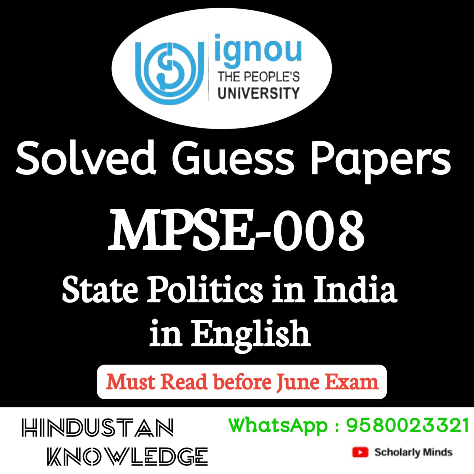 Title : MPSE 008 : STATE POLITICS IN INDIA Guess Paper June Exam 2025