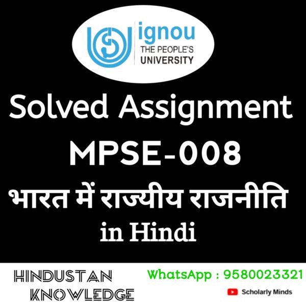 Assignment Title : MPSE – 008 भारत में राज्यीय राजनीति in Hindi Solved Assignment 2024-25