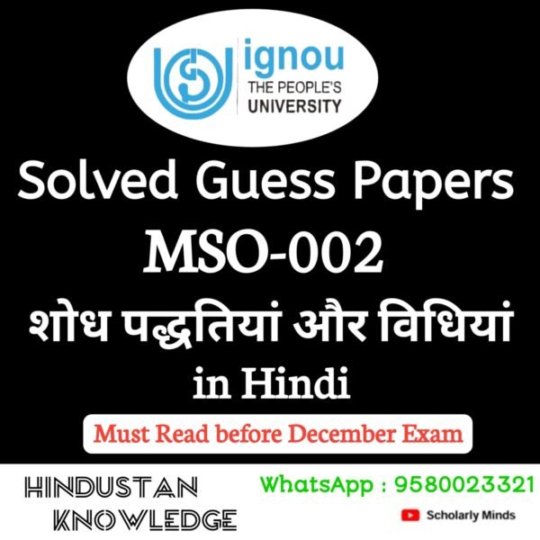 MSO 002 : शोध पद्धतियाँ और विधियाँ in Hindi Solved Guess Paper December 2025 Exam